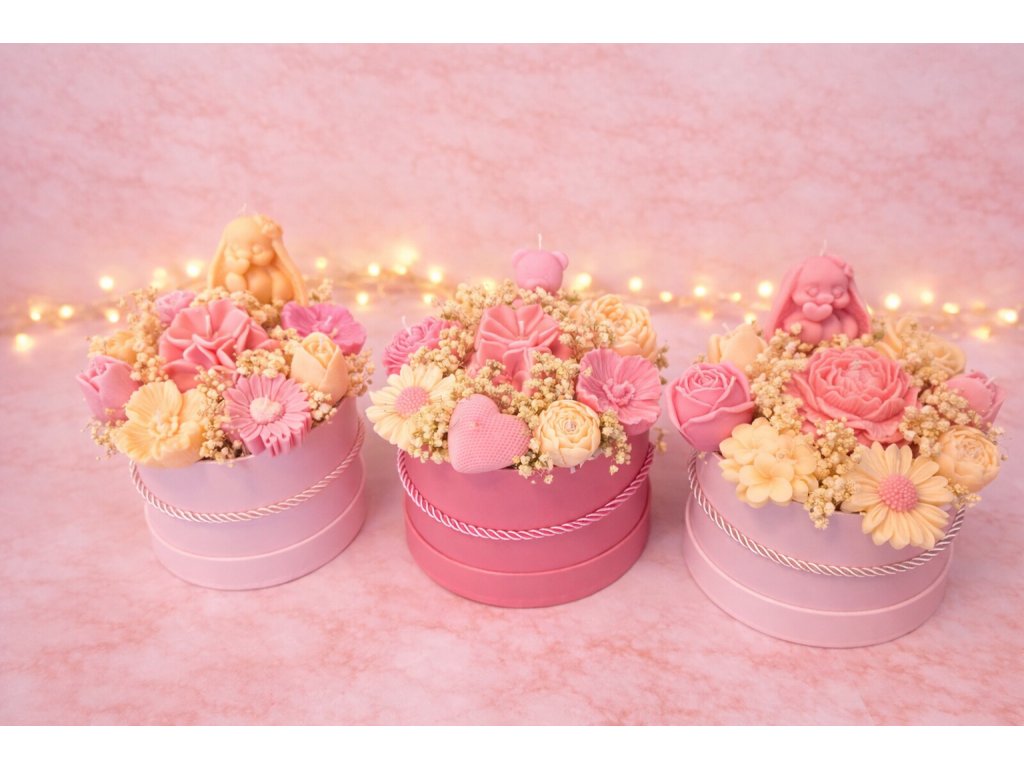 Tento originální boxík tvoří květiny ze svíček, které nikdy nezvadnou a budou dělat radost po dlouhou dobu. Na první pohled působí jako klasická květinová aranž, ve skutečnosti se však jedná o jedinečný dekorativní kousek s praktickým využitím.