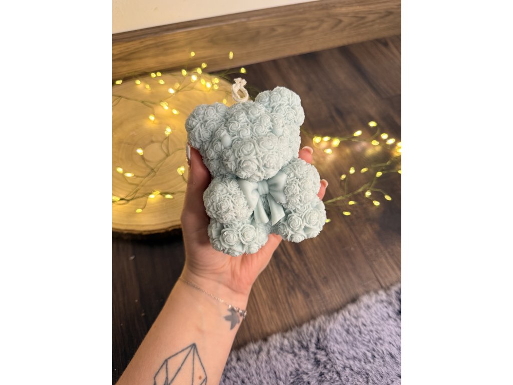Velký medvídek s mašličkou ze sójového vosku je výrazná a elegantní dekorativní svíčka, která zaujme svým detailním zpracováním a roztomilým designem. Přírodní sójový vosk zajišťuje čisté hoření a jemný, luxusní vzhled. Svíčka je ideální jako originální dárek nebo stylový doplněk interiéru, vhodný k narození dítěte, křtinám, svatbě či jiným výjimečným příležitostem.