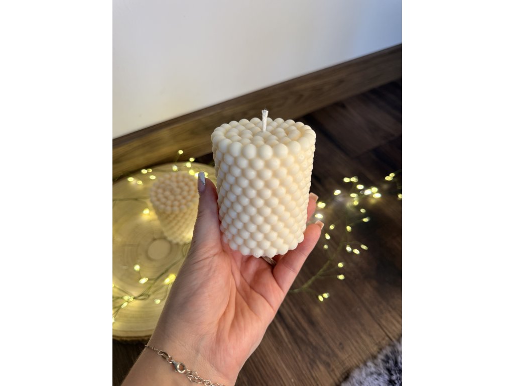 Perličková svíčka okouzlí svým jemným a originálním vzhledem. Její povrch je tvořen drobnými perličkami, které vytvářejí elegantní strukturu a dodávají svíčce luxusní charakter. Působí jako stylový dekorativní prvek, který krásně doplní moderní i romantický interiér. Díky své velikosti nabízí dlouhou dobu hoření a navozuje příjemnou, hřejivou atmosféru. Ideální volba pro ty, kteří hledají jedinečný designový kousek nebo vkusný dárek.