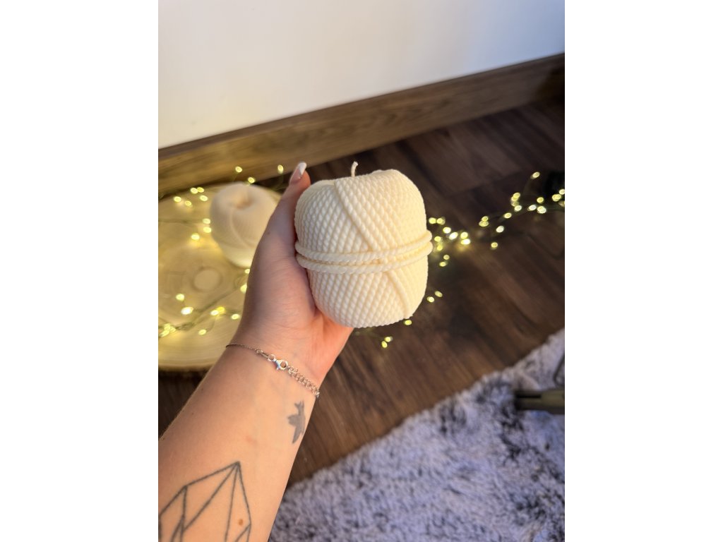 Svíčka ve tvaru pleteného klubíčka okouzlí originálním a útulným designem. Její textura připomíná jemně spletená vlákna, což jí dodává dekorativní a hřejivý vzhled. Díky dlouhé době hoření vytváří příjemnou atmosféru a stane se krásným doplňkem každého interiéru nebo stylovým dárkem.