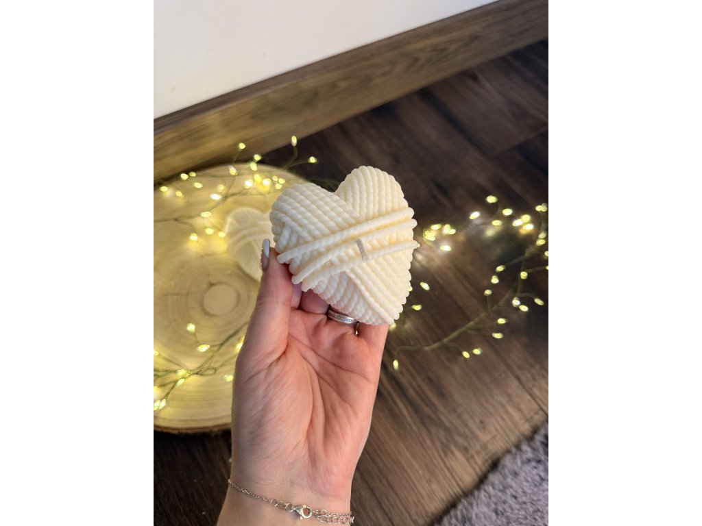 Ručně vyráběná svíčka ve tvaru pleteného srdíčka spojuje symbol lásky s jemnou strukturou připomínající ruční práci a útulnost domova. Detailní „pletený“ reliéf dodává svíčce originální vzhled a činí z ní nejen funkční, ale i výrazný dekorativní prvek. Je vyrobena z kvalitního vosku, který zajišťuje rovnoměrné a čisté hoření. Díky svému hřejivému designu je ideální jako dárek k Valentýnu, výročí, svatbě nebo jako milá pozornost pro potěšení blízkých.