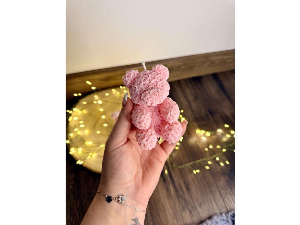 Růžová svíčka ve tvaru medvídka je jemná a elegantní dekorace s roztomilými detaily a hladkým povrchem. Díky svému něžnému odstínu je ideální jako dárek k narození dítěte, křtinám, Valentýnu nebo jako stylový doplněk do interiéru.